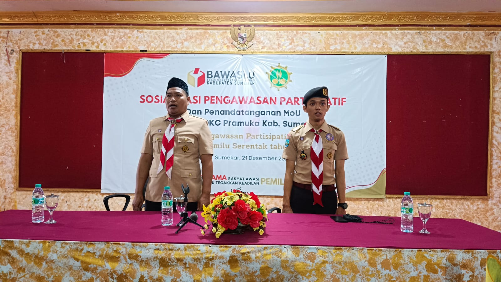Bawaslu Sumenep gelar Sosialisasi Pengawasan Partisipatif, dan Penandatanganan Nota Kesepahaman (MoU) bersama DKC Pramuka Sumenep