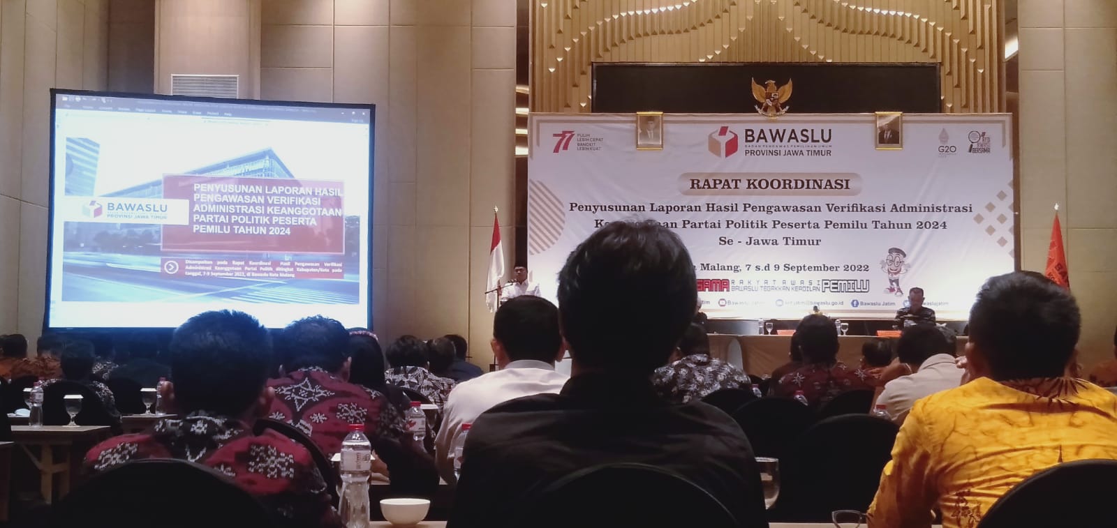 Kegiatan ini diselenggarakan oleh Bawaslu Jawa Timur dalam rangka mengidentifikasi permasalahan, potensi sengketa, melakukan evaluasi dan penyusunan laporan hasil pengawasan pada tahapan verifikasi administrasi keanggotaan partai politik pada Pemilu 2024.