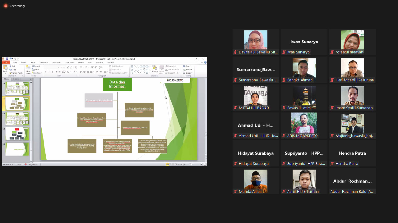 Diskusi ini dimulai tepat pukul 08.00 WIB, mengawali diskusi Bawaslu Jawa Timur menyampaikan rencana kegiatan bulan Juni-Juli 2022 dan dilanjut presentasi kelompok Bawaslu Kabupaten/Kota.