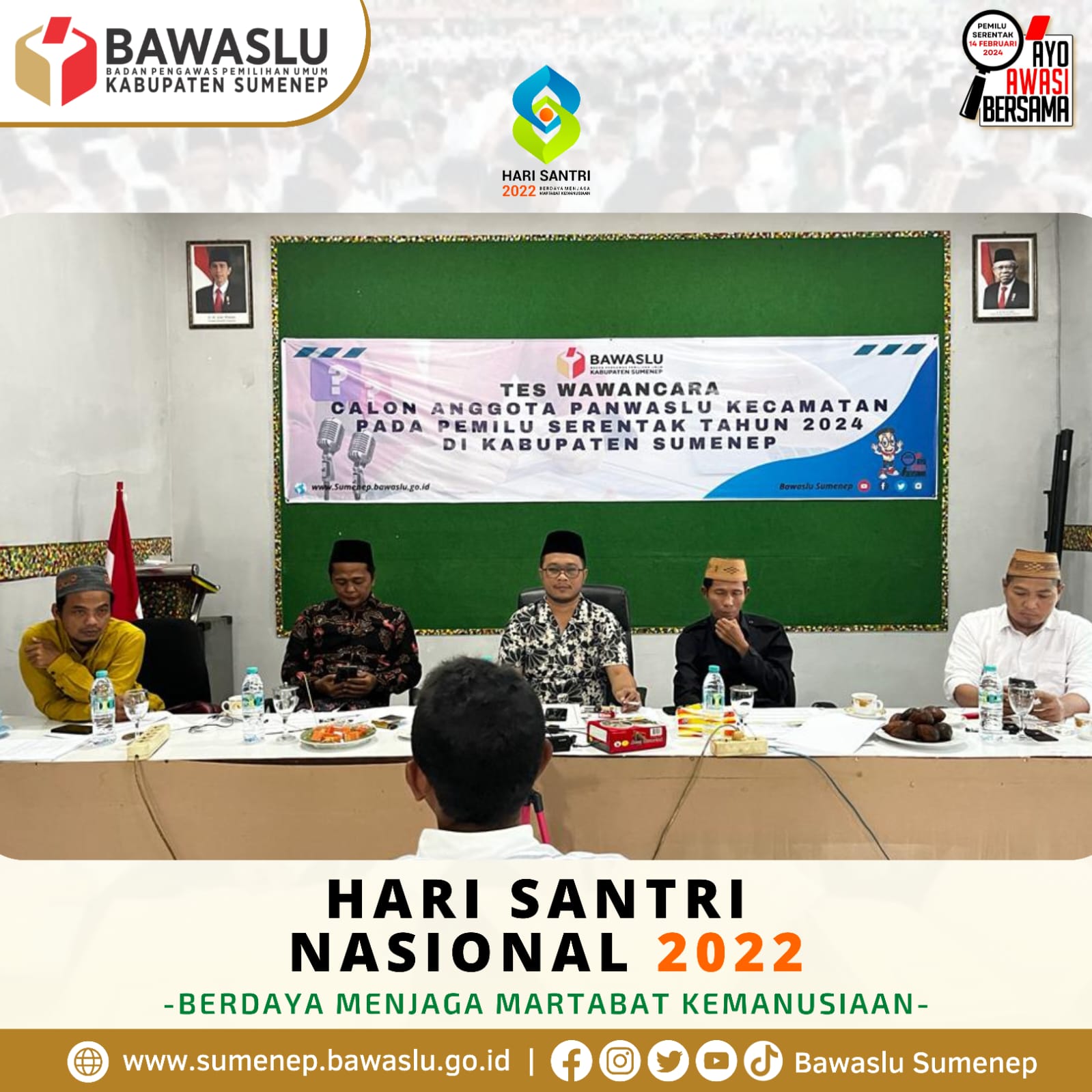 sumenep.bawaslu.go.id - SUMENEP. Tepat Peringatan Hari Santri Nasional 2022, Sabtu (22/10/2022), Pimpinan serta jajaran Sekretariat Bawaslu Kabupaten Sumenep melaksanakan Tes Wawancara Calon Panwaslu Kecamatan Pada Pemilu Tahun 2024 dengan memakai sarung dan peci, Hotel Utami Sumenep.