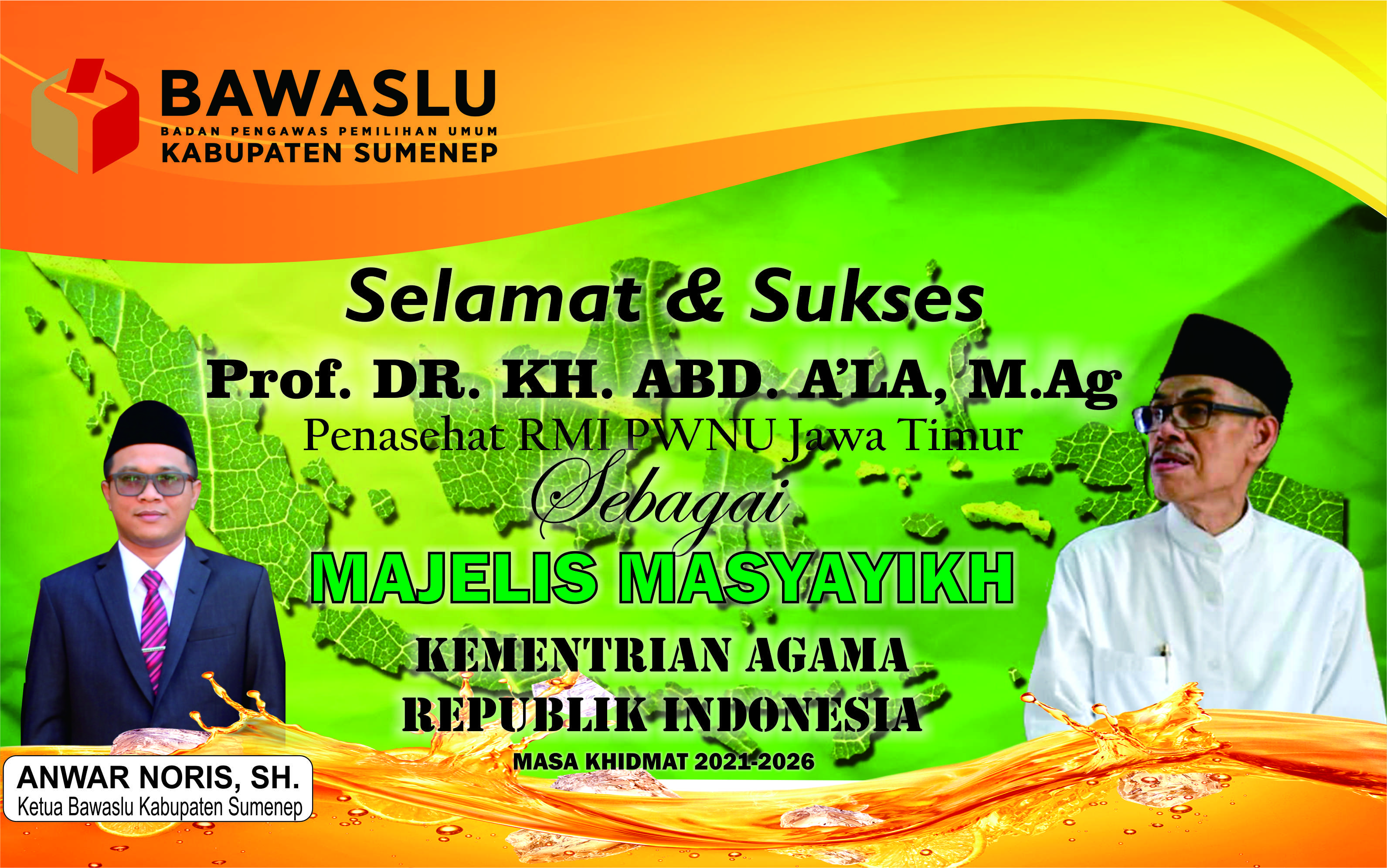 BAWASLU Kabupaten Sumenep mengucapkan Selamat dan Sukses kepada Prof. Dr. KH. Abd. A'la, M.Ag sebagai Majelis Masyayikh Kementerian Agama Republik Indonesia Masa Khidmat 2021 - 2026, Semoga Semakin Amanah dalam Mengemban Tugas yang Baru.