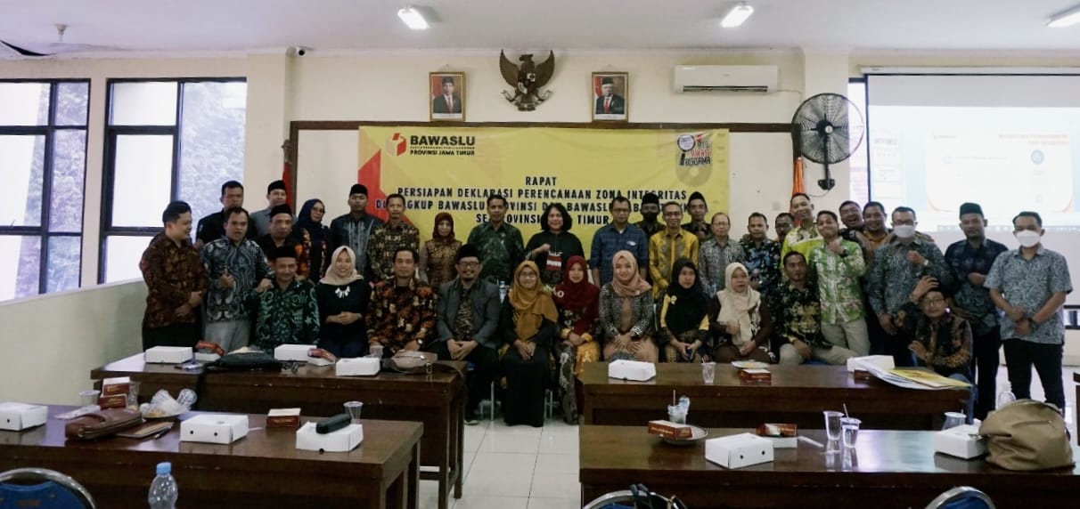 Untuk itu Bawaslu Provinsi Jawa Timur menyelenggarakan Rapat Persiapan Deklarasi Pencanangan Zona Integritas di Lingkup Bawaslu Provinsi dan Bawaslu Kabupaten/Kota se Provinsi Jawa Timur, di Kantor Kecamatan Pandaan Kabupaten Pasuruan, Kamis (14/7/2022).