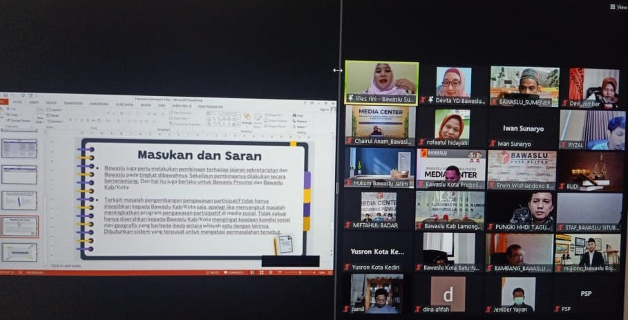 Bawaslu Sumenep dalam hal ini Imam Syafii, selaku Koordiv. Hukum, Humas, Dan Datin senantiasa hadir dan mengikuti secara daring. Menurutnya kegiatan ini sebagai upaya Bawaslu Sumenep mensukseskan pelaksanaan Pemilu yang beberapa hari lagi tahapan akan segera dimulai.