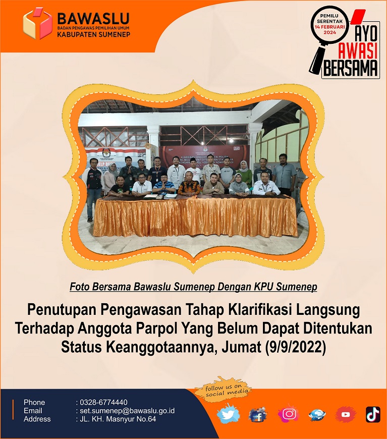 Pengawasan ini dilakukan sampai pukul 00.00 WIB, karena sesuai jadwal sebelumnya tahapan KPU Kabupaten/Kota melakukan verifikasi administrasi terhadap surat pernyataan dugaan keanggotaan ganda dan keanggotaan yang berpotensi belum memenuhi syarat dari partai politik dan KPU Kabupaten/Kota melakukan klarifikasi secara langsung terhadap anggota partai politik yang belum dapat ditentukan statusnya berahir sampai 8 September 2022.