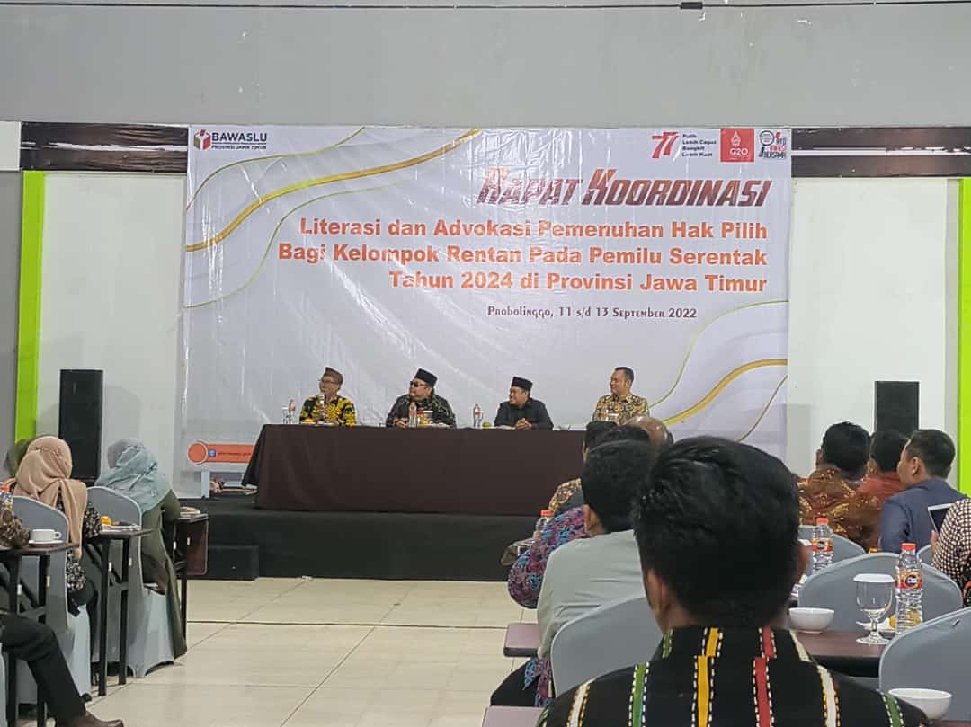 sumenep.bawaslu.go.id - PROBOLINGGO. Bawaslu Kabupaten Sumenep mengikuti rapat koordinasi literasi dan advokasi pemenuhan hak pilih bagi kelompok rentan pada Pemilu serentak tahun 2024, di Kantor Bawaslu Kabupaten Probolinggo, Minggu-Selasa (11-13 September 2022).