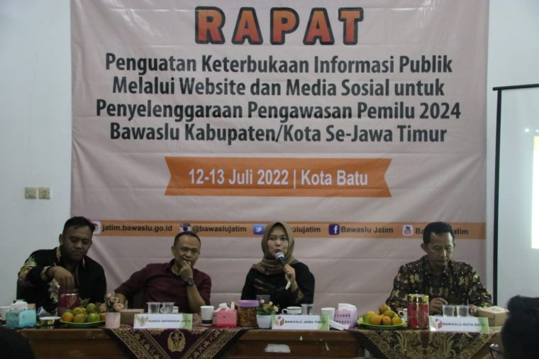sumenep.bawaslu.go.id - Kota Batu. Rapat penguatan keterbukaan informasi publik (KIP) pada Website dan media sosial dilingkungan Bawaslu Jawa Timur dihadiri dua Komisioner Komisi Informasi Provinsi Jawa Timur yaitu Imaduddin selaku ketua, dan Elis Yusniyawati, bertindak sebagai narasumber. Selasa-Rabu (12-13/7/2022) di Kantor Bawaslu Kota Batu.