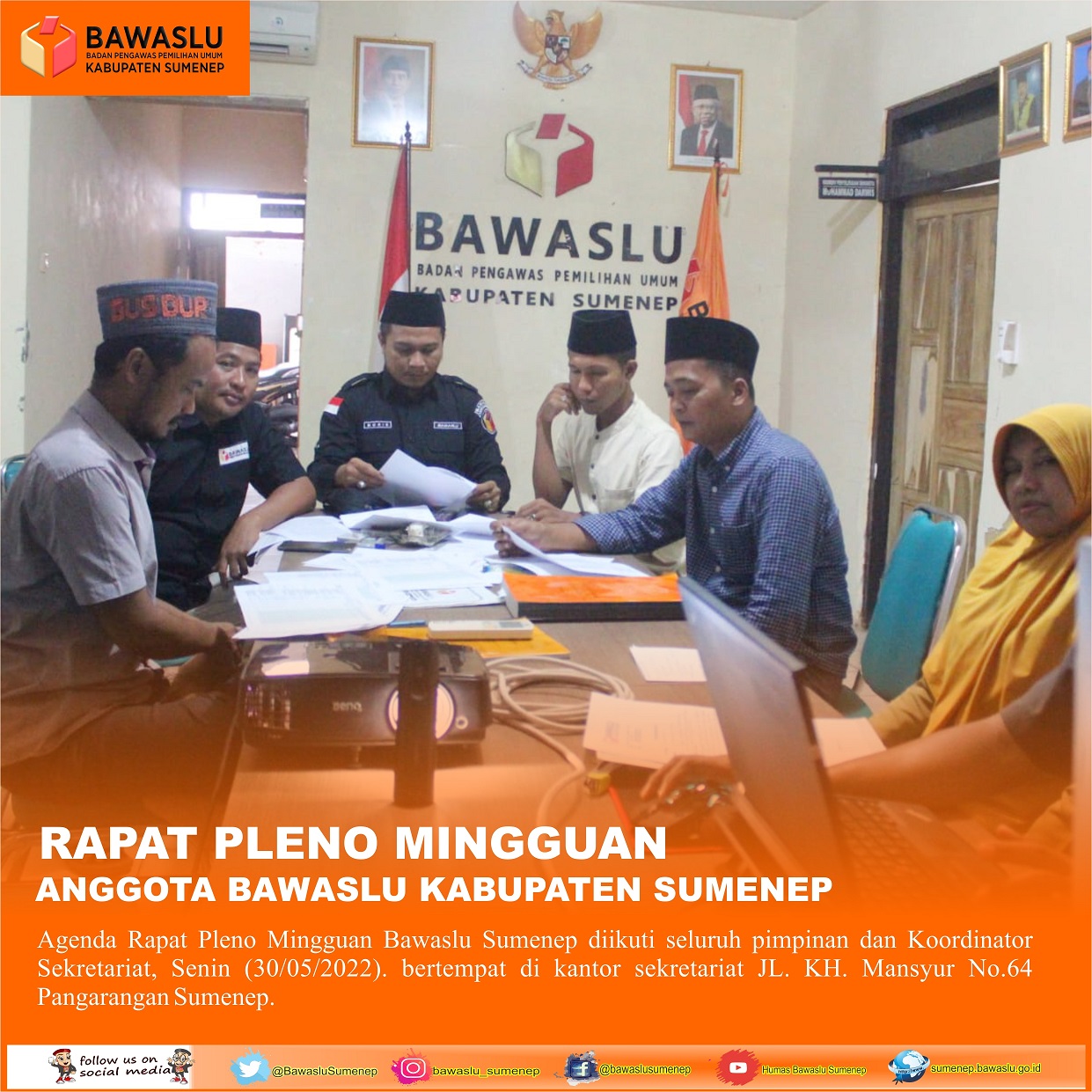sumenep.bawaslu.go.id - SUMENEP. Senin (30/05/2022) Bawaslu kabupaten Sumenep telah melakukan rapat pleno mingguan bertempat di Sekretariat Jl. KH. Mansyur No.64 Pangarangan.