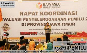 Ketua Bawaslu RI, Abhan saat menyampaikan sambutan dalam pembukaan acara Rapat Koordinasi Evaluasi Penyelenggaraan Pemilu 2019 di Provinsi Jawa Timur, (2/11/2019) di Hotel Wyndham, Surabaya.