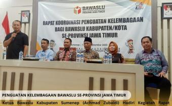 Rapat Koordinasi Penguatan Kelembagaan Bagi Bawaslu Kabupaten/Kota se-Provinsi Jawa Timur” Bertempat di Dinas Pemberdayaan Masyarakat Dan Desa Kabupaten Sumenep, 17 s.d 19 September 2023.