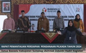 Rapat Pemantauan Persiapan Pendanaan Pilkada Tahun 2024 , bertempat di. pendopo Sumenep, Selasa (19/09/2023). Yang dihadiri oleh Ketua, Koordinator divisi SDM dan kepala sekretariat bawaslu Kabupaten/Kota se provinsi Jawa Timur.