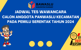 Berikut terlampir Jadwal Tes Wawancara Calon Anggota Panwaslu Kecamatan Untuk Kabupaten Sumenep Pada Pemilu Serentak Tahun 2024 :