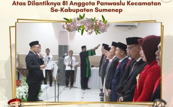 sumenep.bawaslu.go.id - Sumenep. Badan Pengawas Pemilihan Umum Kabupaten Sumenep resmi melantik 81 Anggota Panwaslu Kecamatan pada Pemilu Serentak Tahun 2024, bertempat di Aula Hotel Musdzalifah, Kamis (27/10/2022).