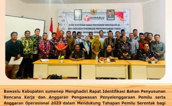 sumenep.bawaslu.go.id - Sumenep. Bawaslu Sumenep menghadiri Rapat Identifikasi bahan penyusunan rencana kerja dan anggaran pengawasan penyelenggaraan Pemilu serta anggaran operasional 2023 dalam mendukung tahapan Pemilu serentak bagi Bawaslu Kabupaten/Kota se-Provinsi Jawa Timur,