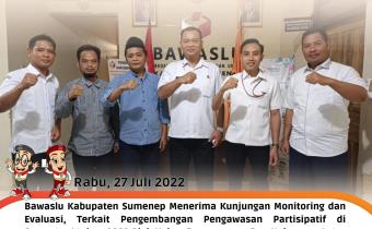 sumenep.bawaslu.go.id - SUMENEP. Bawaslu Sumenep menerima kunjungan dari Bawaslu Provinsi Jawa Timur terkait dengan kegiatan Monitoring dan evaluasi pengembangan pengawasan partisipatif di semester I, Rabu (27/7/2022).