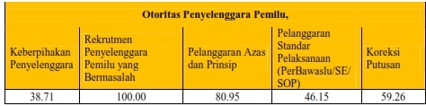 Sementara terkait dengan keberpihakan, pelanggaran standar pelaksanaan dan koreksi putusan masih masuk kategori cukup, yakni dibawah 60%.