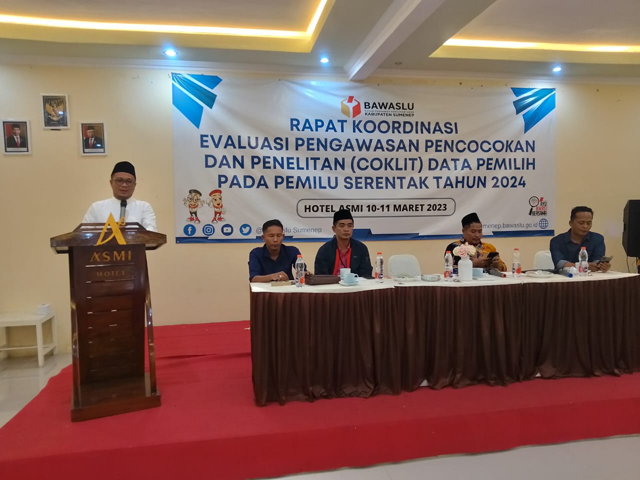 Dalam sambutannya Ketua Bawaslu Kabupaten Sumenep Anwar Noris, SH. Menyampaikan bahwa kegiatan ini diselenggarakan dalam rangka mengevaluasi hasil kinerja-kinerja pengawasan khususnya pada ranah pengawasan pencocokan dan penelitian (coklit) data pemilih.