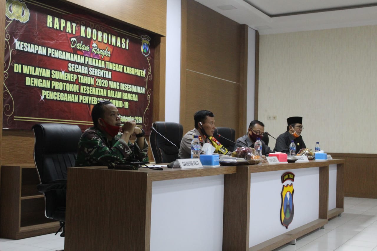 Kapolres Sumenep AKBP Darman, S.I.K Memimpin Pelaksanaan Rakoor Persiapan Pilkada Serentak Kabupaten Sumenep. AKBP Darman, S.I.K mengarahkan Agar menciptakan suasana pemilihan kepala daerah di Kabupaten Sumenep ini dengan suasana yang sejuk di tengah Pandemi Covid-19 sekarang ini.