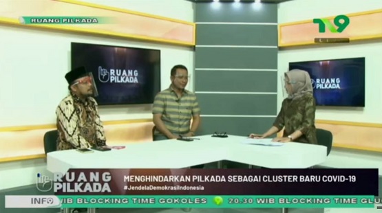 sumenep.bawaslu.go.id - Sumenep. Bawaslu sumenep menghadiri acara Ruang Pilkada Jendela Demokrasi Indonesia, dengan tema Menghindarkan Pilkada sebagai Cluster Baru Covid-19, yang diadakan oleh TV 9 Nusantara bertempat di Jl. Jl. Raya Darmo No. 96 Surabaya-Indonesia.