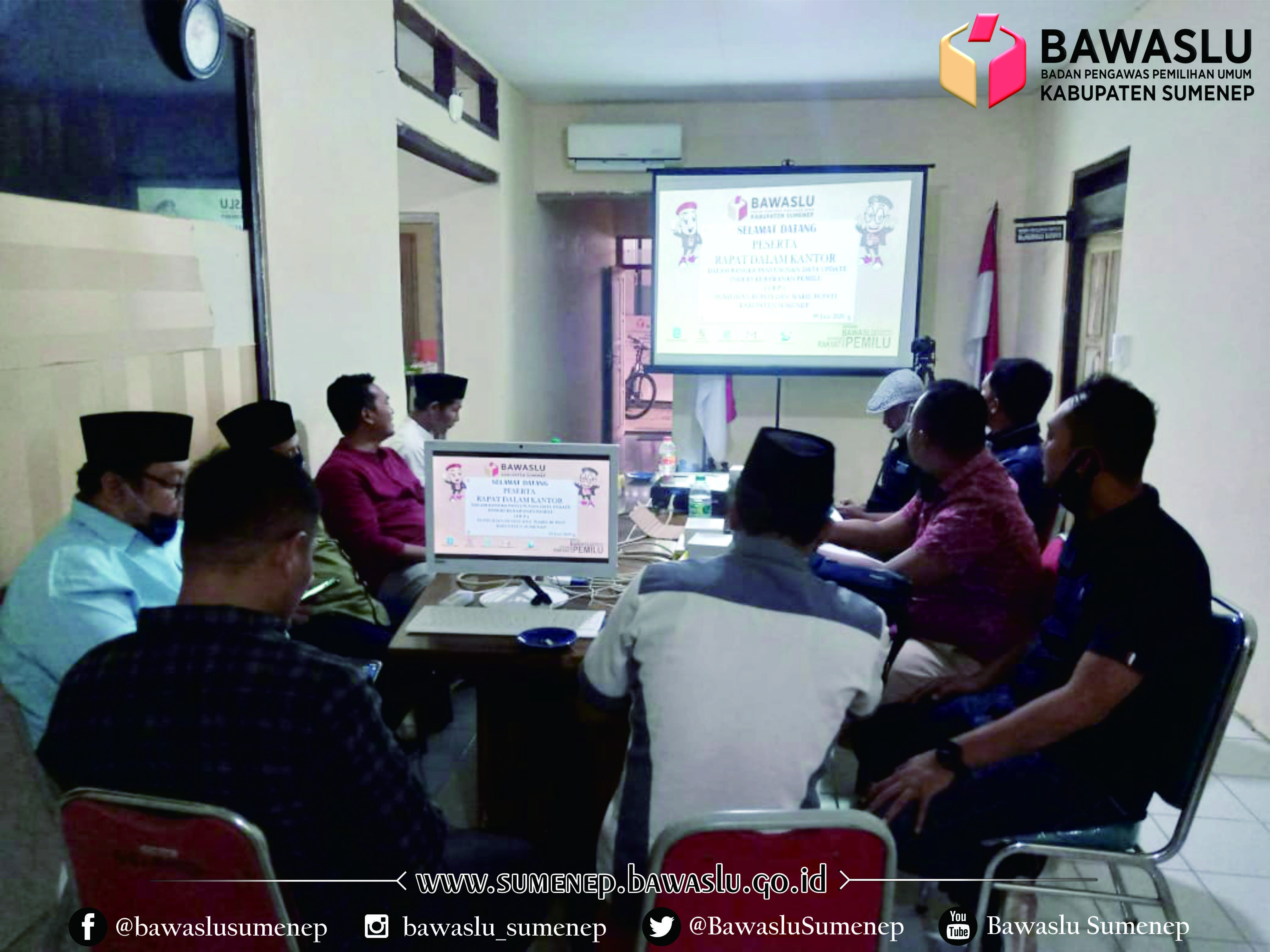 Pelaksanaan Rapat Dalam Kantor, Penyusunan data update Indeks Kerawanan Pemilu (IKP) di Kantor Bawaslu Sumenep, Selasa (9/6/2020).