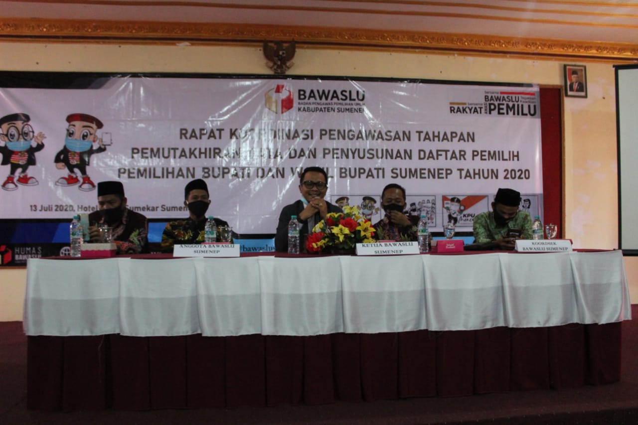 sumenep.bawaslu.go.id - Sumenep. Bawaslu Sumenep melaksanakan Rapat Koordinasi Pengawasan Tahapan Pemutakhiran Data Dan Penyusunan Daftar Pemilih Pemilihan Bupati Dan Wakil Bupati Sumenep Tahun 2020, Senin (13/7/2020) di Hotel Utami Sumekar Sumenep.