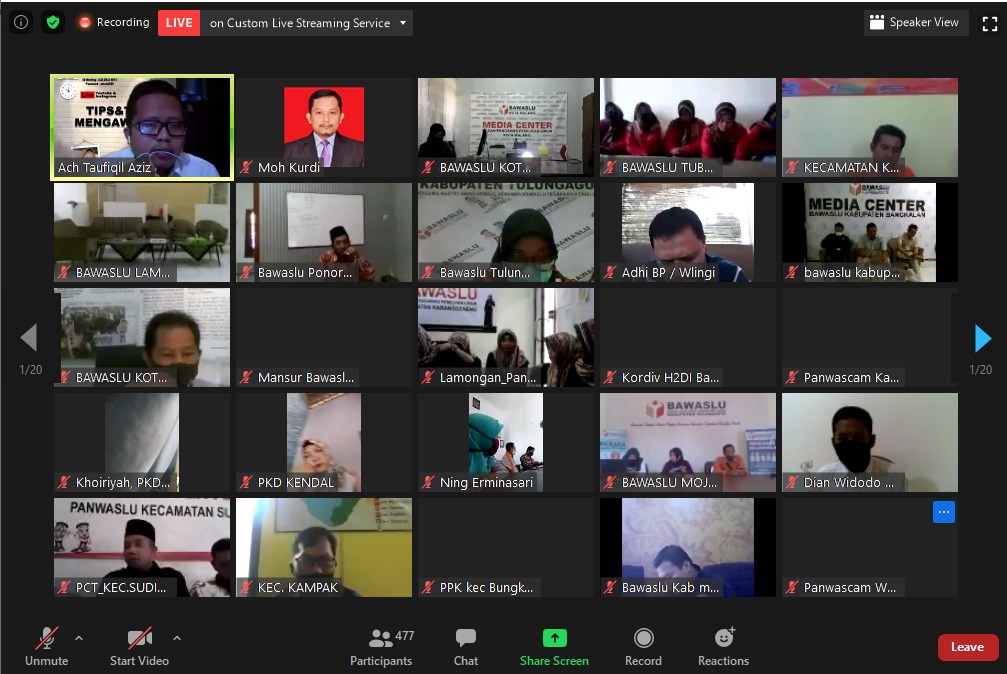 sumenep.bawaslu.go.id - Sumenep. Pelaksanaan Pilkada serentak Tahun 2020 ditengah Pandemi Covid-19 tentunya menjadi tantangan yang berat, utamanya bagi penyelenggara Pemilu dalam menjalankan tugasnya di setiap tahapan. Dengan demikian maka Bawaslu Provinsi Jawa Timur selenggarakan dialog dengan Tema Tips & Trik Sehat Mengawasi Pilkada yang dilaksanakan secara virtual. Senin (27/7/2020)