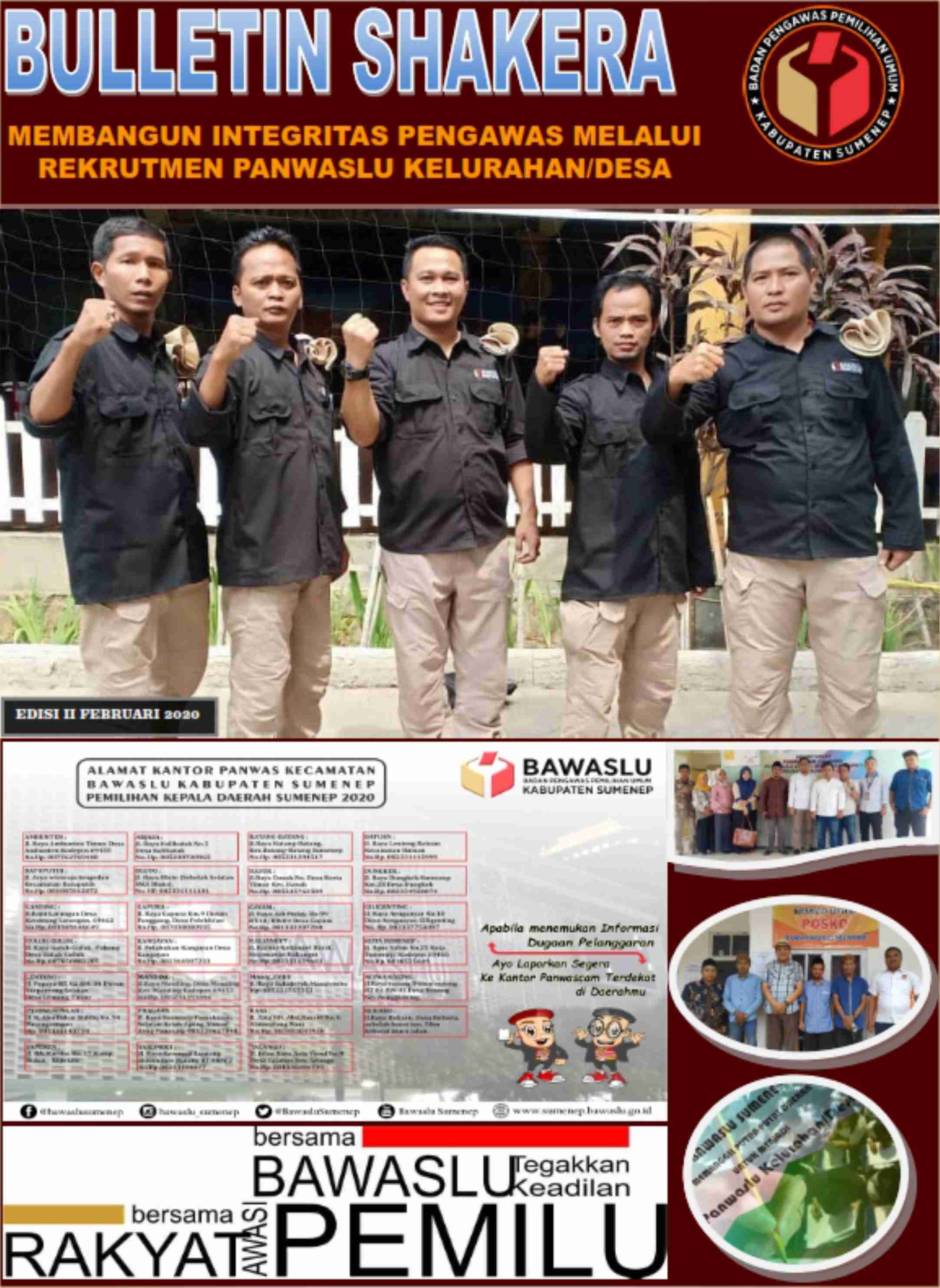 sumenep.bawaslu.go.id - Sumenep. Kami segenap Tim Redaksi Bulletin Shakera Bawaslu Kabupaten Sumenep mengucapkan puji syukur kepada Tuhan YME atas rampungnya Edisi II bulan Februari 2020. Meskipun banyak bulletin bacaan di Kota Sumenep tapi kami optimis akan mendapat tempat di hati masyarakat pecinta baca.