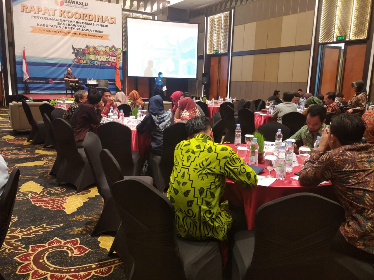 sumenep.bawaslu.go.id - Banyuwangi. 38 Bawaslu Kab/Kota se-Jawa Timur mengikuti Rapat Koordinasi Penyusunan Daftar Informasi Publik (DIP) yang di selenggarakan oleh Bawaslu Provinsi Jawa Timur Di El Hotel Royale Banyuwangi, 1-3 Februari 2020.