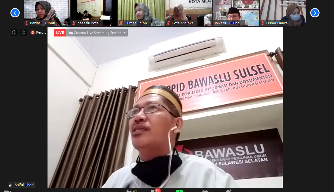 Materi kali ini disampaikan oleh Saiful Jihad, anggota Bawaslu Provinsi Sulawesi Selatan yang membidangi Divisi Humas Dan Hubungan Antar Lembaga.