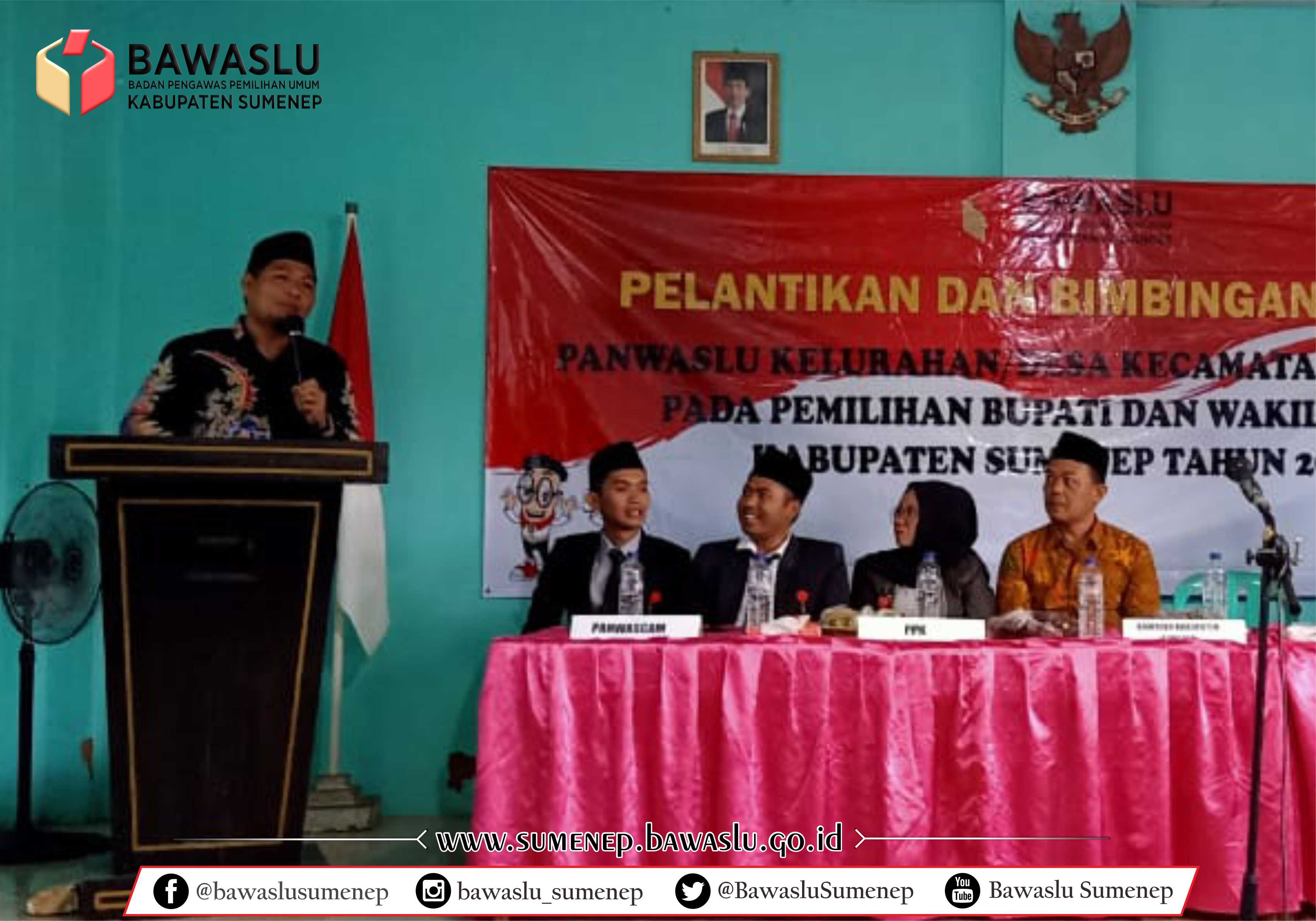 Anggota Bawaslu Kabupaten Sumenep Koordinator Divisi OSDM & DATIN Hosnan Hermawan menyampaikan, bahwa pelaksanaan pelantikan ini dilakukan secara serentak di 27 kecamatan di Sumenep terhadap Pengawas Kelurahan/Desa.