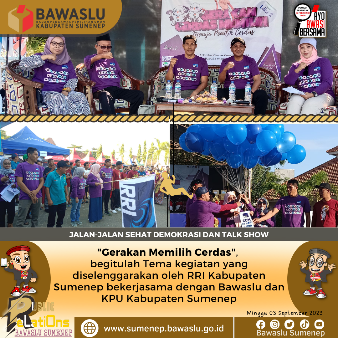 "Gerakan Memilih Cerdas", begitulah Tema kegiatan yang diselenggarakan oleh RRI Kabupaten Sumenep bekerjasama dengan Bawaslu dan KPU Setempat, Minggu (3/9/2023).