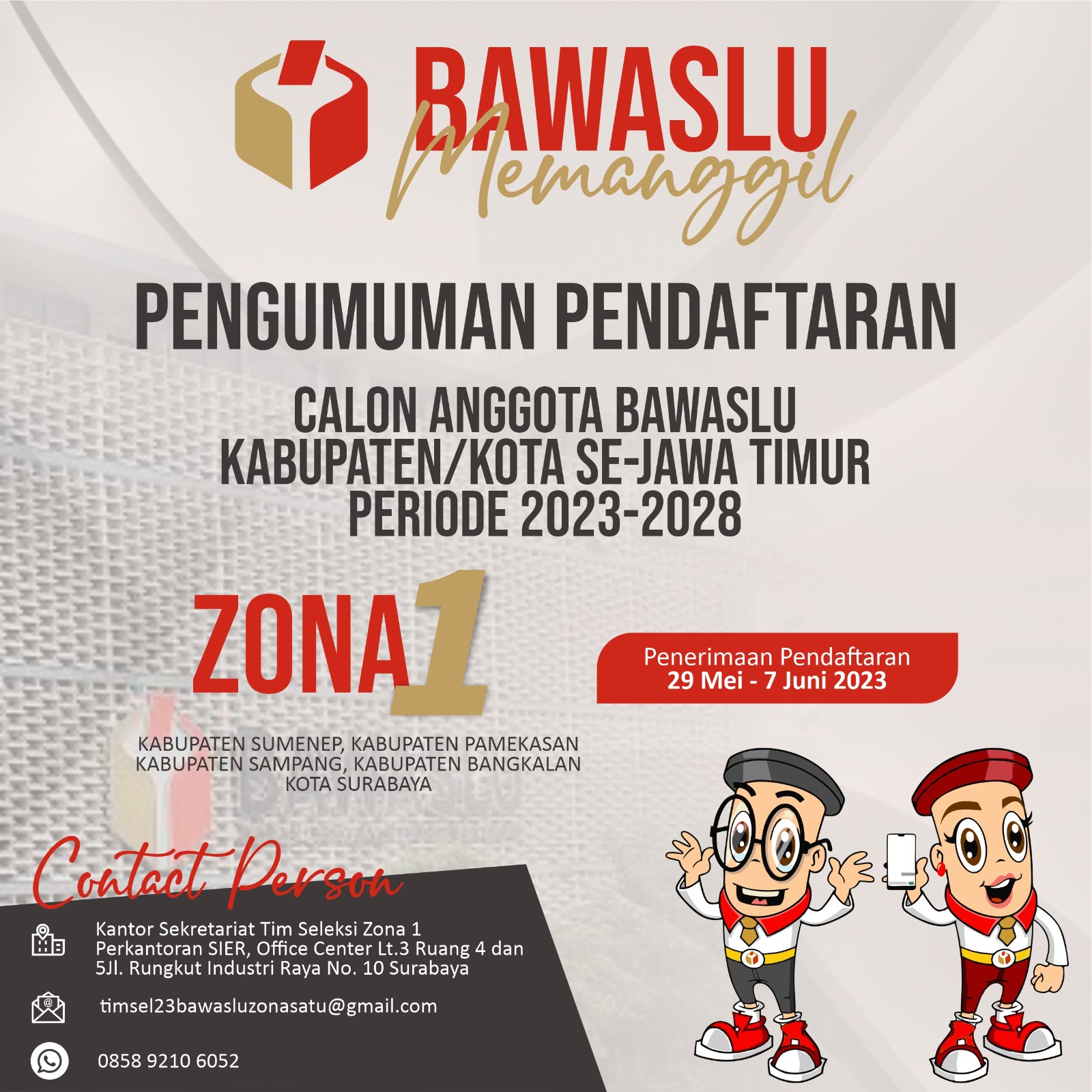 PENGUMUMAN PENDAFTARAN CALON ANGGOTA BAWASLU KABUPATEN/KOTA PROVINSI JAWA TIMUR ZONA 1 PERIODE 2023-2028