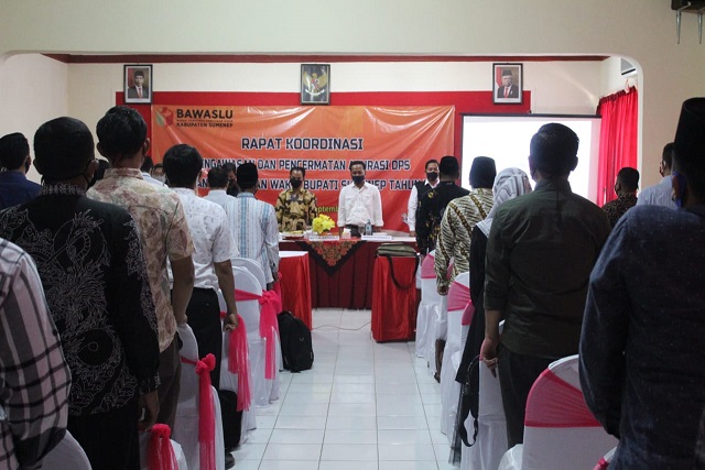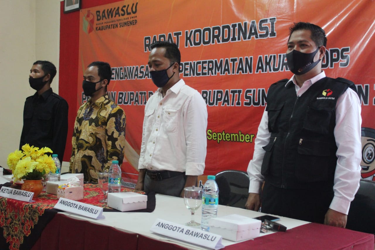 Pada Rabu (23/09/2020) Bawaslu Sumenep bersama Panwascam Koordiv. PHL se-Kabupaten Sumenep melakukan Rapat Koordinasi Pengawasan Dan Pencermatan Akurasi DPS Pemilihan Bupati Dan Wakil Bupati Sumenep Tahun 2020, di Hotel Utami Sumekar. Nantinya hasil pencermatan tersebut akan direkomendasikan kepada KPU untuk ditindaklanjuti.