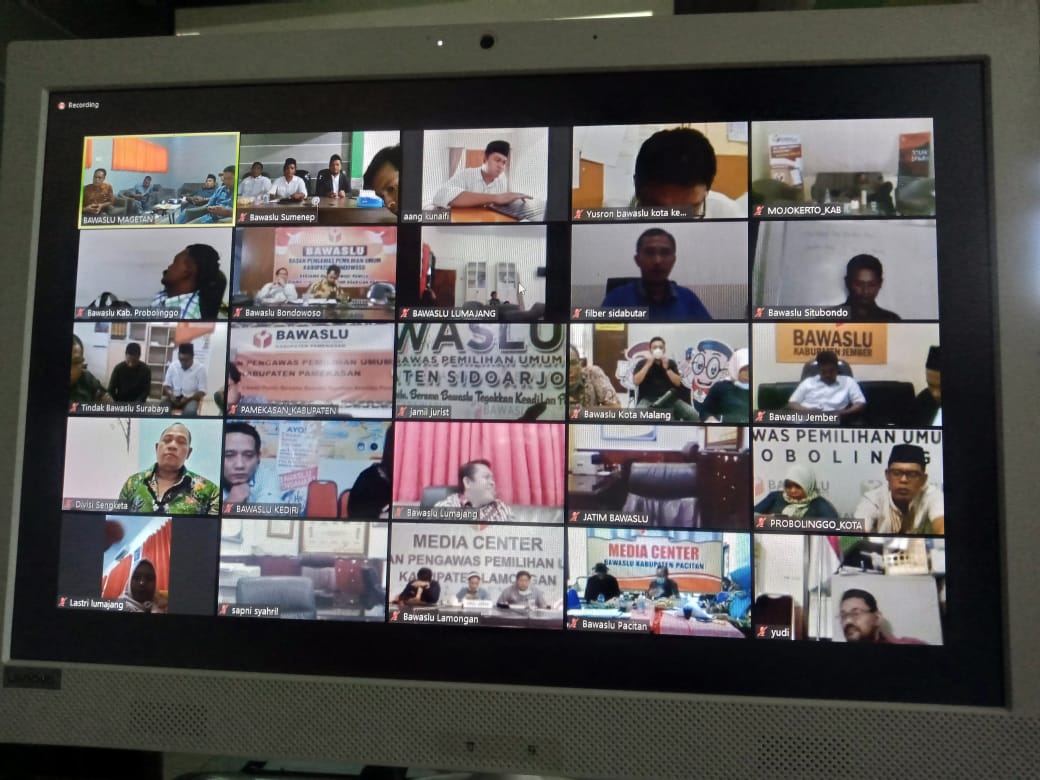 Rakor Via Vidcon, Bawaslu Jatim : Tingkatkan Pencegahan Covid-19