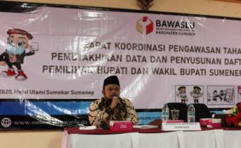 Rafiki, SDM Parmas KPU Sumenep dalam acara Rapat Koordinasi Pengawasan Tahapan Pemutakhiran Data Dan Penyusunan Daftar Pemilih Pemilihan Bupati Dan Wakil Bupati Sumenep Tahun 2020, Senin (13/7/2020) di Hotel Utami Sumekar Sumenep.