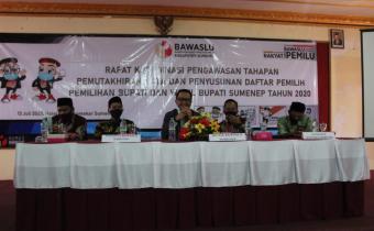 Pimpinan Bawaslu Kabupaten Sumenep dalam Pembukaan Rakoor Pengawasan Tahapan Pemutakhiran Data Dan Penyusunan Daftar Pemilih Pada Pemilihan Bupati Dan Wakil Bupati Sumenep, Senin (13/7/2020)
