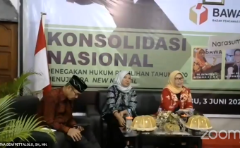 Bawaslu Sumenep (dua dari kiri atas) Hadir Secara Daring dalam Acara Halal Bihalal yang diselenggarakan Bawaslu Jawa Timur, Senin (1/6/2020).