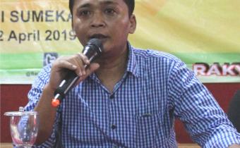 Anggota Bawaslu Sumenep Abdur Rahem saat menjadi pembicara dalam Acara Sosialisasi Lembaga Pemantau Pemilu di Kabupaten Sumenep.