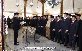Pelantikan 81 Anggota Panwascam Terpilih se Kabupaten Sumenep oleh Ketua Bawaslu Sumenep Anwar Noris, di Pendopo Keraton Sumenep, (28/12/2019)