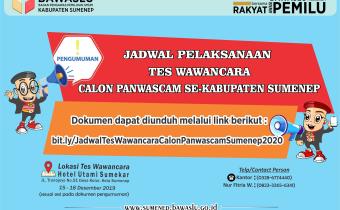 Berikut Jadwal Tes Wawancara Calon Panwascam Se Kabupaten Sumenep Pada Pemilihan Bupati dan Wakil Bupati Kabupaten Sumenep Tahun 2020.